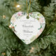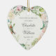 Com uma delicada granja floral de aquarela, este casamento chic ou o enfeite de aniversário pode ser personalizado com sua mensagem especial de aniversário, nomes e data. O reverso apresenta uma coroa floral com iniciais de monograma elegante. Projetado por Thisnotme©