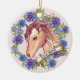 Ornamento de Cavalo Daisy Azul, t-shirts e presentes por ArtMuvz Illustration. Camiseta de Cavalo Dançante Ocidental, roupa de cavalo rodeio e presentes de natal para Cowboy e Cowgirl. Chapéu de Cowboy, saco de tote de cavalo, caneca, roupa de cavalo ocidental, camiseta de cavalo, presentes e roupa de Country Western. Para personalizar, adicione seu nome ou adicione texto. Personalize este ornamento de cavalo para torná-lo exclusivo seu ou para dar como presente personalizado