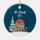 Personalize este adorável ornamento de cena da aldeia de natais vintages. Personalize com o nome e o ano de sua escolha. Duplo lado, é bonito não importa o lado que esteja mostrando na sua árvore de Natal.