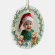 Celebrate your little one’s first festive season with our Bear Hugs & Holly personalized Christmas ornament. Featuring a custom photo framed by lush greenery, white winter blooms, golden stars, and two cuddly teddy bears, this keepsake captures the joy of baby’s first Christmas. Add their name and date to create a heartwarming treasure that brings smiles to your tree year after year.