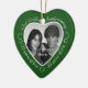 Comemore um 23º ano feliz de casamento com um ornamento personalizado de fotos em um delicioso quadro de forma cardíaca. Basta carregar sua própria foto do casal casado e ela aparecerá no recorte. O fundo verde apresenta uma fonte e decorações de script branco. As palavras são: 23º Aniversário de Casamento - 23 anos de amor - 23 anos de alegria. No verso, você pode personalizar esta manutenção com sua própria mensagem e também pode adicionar o ano ou a data de cheio, se preferir. Nota: se você gosta do ornamento do aniversário de 23 anos, mas tem seu coração marcado em uma cor diferente, por favor me contate.