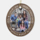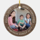Comemore as alegrias simples dos feriados com um personalizado ornamento cerâmico de madeira redonda de dois faux. Todos os textos e imagens neste modelo são simples de personalizar e podem ser diferentes ou iguais em frente e atrás. Se preferido, mude "Paz Amor, Alegria Feliz Natal" para qualquer citação ou ditado. (DICAS DE IMAGEM e DESIGN DE TEXTO: 1) Para ajustar a posição do texto, adicione espaços no início ou no fim. 2) Para centralizar a foto exatamente como quiser, recorte-a em forma quadrada antes de carregá-la no site do Zazzle.) O design moderno estilo de fazenda apresenta um fundo castanho rústico de madeira falsa, nome de tipografia de na moda e ano, e duas imagens de sua escolha. Esta familia única adiciona um toque elegante às decorações das casas de Natal.