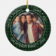 2 Foto Xadrez Buffalo Faith Family Love Joy - O Enfeites de natal exclusivo apresenta 2 das suas fotos favoritas da família, uma na frente e outra na parte de trás, cercada por um texto editável que lê "FAITH ・ FAMILY", AMOR ・ JOY e é personalizado com seu nome de família e ano. Todo texto é editável. Nosso modelo de design de alta qualidade torna tão fácil para você personalizar nosso ornamento e torná-lo exclusivamente seu. O ornamento faz parte de uma coleção. Mostrado em verde e preto. Também estará disponível em vermelho e preto. Desenvolvido por Beverly Bainbridge Magnolia & Thistle