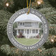 Celebre a alegria de seu novo lugar com duas fotos personalizadas "Primeiro Natal em nossa Nova Casa" e ornamento cerâmico branco redondo. Todos os textos e imagens neste modelo são simples de personalizar, e podem ser diferentes ou iguais em frente e atrás. (DICAS DE IMAGEM e DESIGN DE TEXTO: 1) Para ajustar a posição do texto, adicione espaços no início ou no fim. 2) Para centralizar a foto exatamente como quiser, recorte-a em forma quadrada antes de carregá-la no site do Zazzle.) A design de borda de cinza Elegante apresenta o nome e o ano da família de tipografia minimalista na moda e duas imagens da sua escolha. Esta familia única adiciona um toque elegante à decoração da casa do Natal ou faz uma ideia pensativa de presente de realeador de casas. Não há lugar como uma nova casa para as férias!