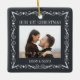 Celebre o feliz feriado de 1rua de seu noivado com nosso ornamento de cerâmica quadrada "2 Fotos de Quadro Ornamental Primeiro Natal Envolvido". Este design apresenta um quadro de ornamento branco simples e na moda em um pano de fundo preto, uma caligrafia de estilo manuscrito, os nomes dos casais e duas fotos da sua escolha. Esta única vitória de casamento adiciona um toque elegante às decorações das casas de Natal.