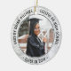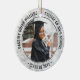 Comemore a conquista do formando com um elegante Enfeites de natal de graduação em mármore preto e branco, personalizado em dois fotoredondos. As imagens e todo o texto são simples de personalizar e podem ser diferentes na frente e no verso. Inclua qualquer citação inspiracional favorita, ditado motivacional, nome e grau da escola, parabéns, obrigados, mãe e pai, ou outra mensagem de sua escolha. Design apresenta uma cinza e uma borda de aparência de mármore branco, nome personalizado da tipografia moderna, escola e ano de aula em círculo, e duas fotos do formando, como fotos de mais velho ou imagens da cerimônia de início. Faz uma ideia séria da formatura.