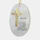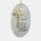 Características deste design uma cruz com um verso da bíblia, 3:16 de John. Na parte traseira, vitral de uma igreja.