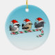 Três passarinhos norte-americanos adoráveis estão vestindo chapéus de Papai Noel e estão empoleirando-se em um bastão de doces neste design original do feriado de Birdorable. Você pode totalmente personalizar este ornamento! Mude o estilo do ornamento - pode ser redondo, oval, estrela-dado forma, camisa-dado forma, ou coração-dado forma. Mova o design ao redor, resize o pássaro, mude ou mova o fundo, adicione suas próprias texto ou imagens! Faça-lhe seus próprios!