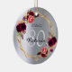 Ornamento De Cerâmica 80 de aniversário floral prata burgundy geométrico