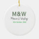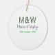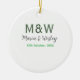 Ornamento De Cerâmica A data romântica moderna verde da cinza do monogra