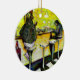 Original painting of two individuals are seated at a counter in a cozy diner. Bright yellow lighting illuminates the scene, creating a warm and inviting atmosphere. Painted by New York City, Fine Arts Artist, Gaye Elise Beda.