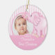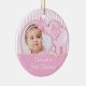 Enfeites de natal de Fotografia giro com um adorável elefante de brinquedo cor-de-rosa em um fundo listrado rosa e branco, basta adicionar sua FOTO! Perfeito para o primeiro Natal e segundo Natal. Um presente de Natal Maravilhoso que certamente será precioso por muitos anos.
