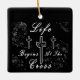Uma maravilhosa mensagem culto com uma silhueta de três cruzes para lembrar aos cristãos que a vida eterna começa na cruz do Cristo.
