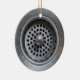 Entalhe da foto de um dreno de banca da cozinha com um filtro. Presente para um canalizador. Dê uma banca da cozinha como um presente a alguém que tem tudo. Agradeça a alguém que tem lavado pratos por anos.