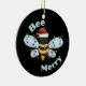 O ornamento cerâmico da abelha de Natal Feliz Traga muito mais alegria de Natal para sua árvore com um ornamento cerâmico personalizado. Adicione fotos da família, imagens e mensagens pessoais a ambos os lados deste ornamento. Um fio de ouro torna fácil pendurar esta fantástica marca de sempre.