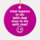 O que acontece na loja da edredão, permanece na loja da edredão! Quilter engraçado que diz com as camisas, o camiseta e os presentes do piscar os olhos do olho da cara para quilters. Presentes estofando divertidos e bonitos para os quilters que amam pendurar para fora na loja da edredão! Presentes estofando originais para o Natal, os aniversários ou a alguma ocasião.