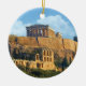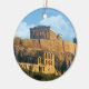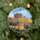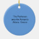 ornamento cerâmico redondo com imagem do glorioso Partenon no alto da Acrópole e arcos do anfiteatro Herodes Atticus, em Atenas, Grécia. O verso é azul com texto personalizável. Veja toda a coleção de Pedidos de Grécias na seção HOME.