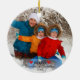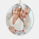 Celebre seus avós com este lindo ornamento de feriado duplo, com fotos frontais e traseiras e três linhas de texto personalizado. As palavras "We Love" estão cercadas por 2 corações vermelhos. Perfeito para vovó, vovô, mãe, pai ou qualquer pessoa especial em sua vida. Faz um presente de guarda-eterno que será precioso por muitos anos.