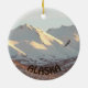 Uma águia careca ao longo da faixa de Chugach coberta pela neve perto de Anchorage, AK. O texto personalizável que lê "ALASKA" também é exibido.