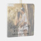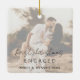 Um ornamento de Natal moderno, com uma simples design com "nosso primeiro natal engajado" em uma tipografia de estilo rústico com seus nomes e ano sobre sua foto favorita com uma cobertura opaca. A sobreposição pode ser removida na ferramenta de edição de design. Este ornamento elegante faz um presente excelente para um casal recém-noivo.