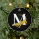 Ornamento De Cerâmica Alligador personalizado de monograma preto e Doura