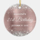Crie seu próprio ornamento aniversário de 21 anos para a sua filha. Personalize o texto do bloco e/ou o estilo da fonte de caligrafia. Altere o texto para qualquer aniversário especial ou de etapa. O fundo da arte digital apresenta uma falso brilho prateado e uma fina folha cor-de-rosa-rosa-cinza-rosa. Na parte de trás, você pode adicionar uma foto da família se quiser personalizar ainda mais este presente. A adorno de aniversário de um milestone para ela.