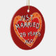 Engraçado e romântico Enfeites de natal de manutenção para seu 25 ou qualquer aniversário de casamento. Um coração vermelho e laranja, com decoração caprichosa, proclamando "RECEM CASADOS... 25 ANOS ATRÁS". O tempo e a vida passaram. Dar aos amigos ou à família um presente de aniversário que eles irão apreciar por anos. Veja mais Enfeites de natal de aniversário de casamento em Zigglets aqui no Zazzle.