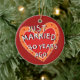 Engraçado e romântico Enfeites de natal de manutenção para seu 30 ou qualquer aniversário de casamento. Um coração vermelho e laranja, com decoração caprichosa, proclamando "RECEM CASADOS...30 ANOS ATRÁS". O tempo e a vida passaram. Dar aos amigos ou à família um presente de aniversário que eles irão apreciar por anos. Veja mais Enfeites de natal de aniversário de casamento em Zigglets aqui no Zazzle.