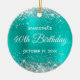 Crie seu próprio ornamento aniversário de 40 anos para sua irmã. Personalize o texto do bloco e/ou o estilo da fonte de caligrafia. Altere o texto para qualquer aniversário especial ou de etapa. O fundo da arte digital apresenta uma falso brilho prateado e uma brilhante folha de papel azul turquesa. Na parte de trás, você pode adicionar uma foto da família se quiser personalizar ainda mais este presente. A adorno de aniversário de um milestone para ela.
