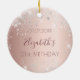 Um ornamento para um aniversário de 21 ruas (ou qualquer idade) feminino e glamouroso. Rosa de fundo dourado com pó falso prateado brilhante. Personalize e adicione uma data, nome e idade 21. O nome é escrito em ouro rosa escuro com um moderno estilo escrito à mão. Perfeito como decoração de festas, favor, guardar ou como presente.