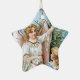 A ilustração bonita do vintage de um anjo que ajuda uma criança pequena decora a árvore de Natal.