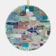 Aproveite as lindas sombras de aqua e azul nesta tapeçaria desenhada para o ornamento cerâmico circular. Um presente perfeito para alguém que gosta de colcha, tricô ou costura. Personalize se desejar. Para ver mais produtos visite http://www.zazzle.com/boatcard