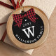 Adicione um encanto rústico à sua árvore de Natal com nosso ornamento de monograma falso da família apresentando um fundo falso rústico de madeira decorado com um arco de xadrez vermelha de búfalo. Personalize com seu monograma familiar, nome e ano. O verso apresenta um lugar para adicionar a foto da sua família. Projetado por Papelaria de Moodthologia