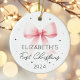 Esta Garota Personalizada Bebê Primeiro Arco Rosa de Natal O Ornamento Cerâmico é perfeito para seus pequenos de Natal primeiro!