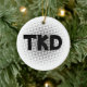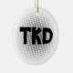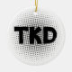 Personalize o Ornamento Artes Marciais TKD Dots Round com o nome do seu artista marcial e data. Este de um tipo personalizado de guardar o enfeite taekwondo apresenta as letras TKD em negrito com um fundo de pontos de cinza.