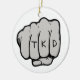 Personalize a única Arte Marcial TKD Fist Round Ornament com o nome do seu artista marcial e do ano atual. Este, de uma espécie de ornamento esportivo de artes marciais personalizado, apresenta um design de punho de cinza com as letras TKD nos dedos.