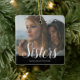 Uma decoração de árvore de natal de fotos de irmãs pode ser mudada para qualquer parente. Apresentando sua fotografia favorita, o texto 'Irmãs' em uma fonte de script e seus nomes sobre um fundo preto.