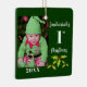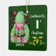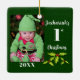 Celebre o Natal de 1rua do seu bebê com um ornamento de manutenção para a sua árvore. Este ornamento cerâmico é uma forma excelente de começar uma tradição familiar e oferecer um presente de herança para seu filho mais tarde na vida. O fundo tem uma aparência falsa de tecido para imitar um ornamento feito à mão. Adicione a sua pequena foto, personalize o nome e o ano e você tem um lembrete excelente de um momento capturado no tempo. Design ©Vann-Horn Creative Photo & Designs.