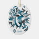 Este ornamento de vôlei de manutenção apresenta uma "explosão" de diferentes tetos, volebolas e cinzas pretas e brancas de tamanho variado, em forma de téal e estrela preta sobre um fundo branco personalizável - personalize com o nome do atleta na frente, ano comemorativo na parte de trás, e jersey number frente and back - katz_d_zynes