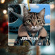 Funny Christmas holiday ornament featuring an image of a cat pilot wearing an Aviation jacket with an Airplane in the foreground. Customize it with your name or initials. Perfect for a pilot, flight instructor, aviation enthusiast, or veteran.