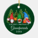 Nosso Primeiro Natal como Avós Coloridos Gnomos de Cores-d'água Difundidos com Ornamento de Pinheiros - Fundo Verde Florestal