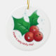 As bagas pequenas bonitos do azevinho estão desejando-lhe o Feliz Natal.