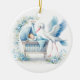 Este ornamento cerâmico é mostrado com um bebê bonitinho e impressão de arte de aquarela de cegos. Personalize este item ou comprar como está. Imagem licenciada
