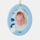 Filhinho Personalizado 1rua Os Ornamentos De Foto De Natal. Apresenta uma ilustração de bonitinha azul com um padrão de bolinhas azul e branco. Personalize facilmente com seu próprio texto. Faz um excelente de manutenção! Para redimensionar e posicionar sua foto, clique no botão "PERSONALIZAR TI".