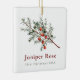 Celebre a alegria do primeiro Natal do seu bebê com este Enfeites de natal maravilhosamente Personalizável, projetado para criar uma manutenção duradoura nos próximos anos. A frente do ornamento apresenta um galho vintage de zimbro e espaço para personalizar com o nome do seu bebê e o ano, enquanto o verso oferece um lugar especial para uma foto carinhosa. Este design versátil também pode ser personalizado para qualquer membro da família, criança ou até mesmo animais de estimação, fazer-o como uma adição perfeita para a decoração de férias. Quer esteja comemorando a primeira temporada de festas do seu bebê ou criando ornamentos personalizados para toda a família, essa única manutenção trará sorrisos a cada Natal.