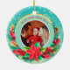 Celebrate a milestone with this stunning personalized photo Christmas ornament! Featuring a gorgeous teal background with sparkling gold accents and a festive wreath of poinsettias, holly, and candy canes, this ceramic ornament is the perfect way to display a treasured photo of your baby in their Santa outfit. Personalize it with the year ("20xx") to commemorate your little one's very First Christmas. A beautiful keepsake for new parents or a thoughtful gift for grandparents.