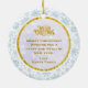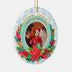 Celebrate a milestone with this stunning personalized photo Christmas ornament! Featuring a gorgeous teal background with sparkling gold accents and a festive wreath of poinsettias, holly, and candy canes, this ceramic ornament is the perfect way to display a treasured photo of your baby in their Santa outfit. Personalize it with the year ("20xx") to commemorate your little one's very First Christmas. A beautiful keepsake for new parents or a thoughtful gift for grandparents.