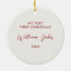 Celebrate your little one’s first Christmas with this timeless keepsake ornament, featuring a minimalist design accented by a charming hand drawn bow detail. The clean layout and soft tones of ivory and cranberry red create a warm, elegant look that complements any holiday décor. Personalize with your baby’s name and year on the back to create a treasured memento for your tree or a thoughtful gift for new parents. Style notes: • “My Very First Christmas” message on back with customizable name and year • Modern script name paired with classic type for a balanced, refined look • Available in multiple color options to match any holiday palette • Perfect for baby’s first Christmas, new parents, or grandparents