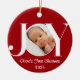 Celebrate your baby’s very first Christmas with this beautiful personalized “JOY” photo ornament! Featuring your little one’s picture inside the “O” and customizable text for name and year, this red and white keepsake adds a heartfelt touch to your holiday tree. Perfect as a cherished gift for parents, grandparents, or godparents — a timeless decoration you’ll treasure for years to come.