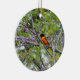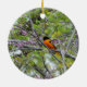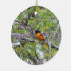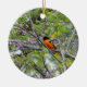 Um homem Baltimore Oriole sentado na minha árvore de rebentos. O pássaro recebeu seu nome da semelhança das cores masculinas com as do casaco de armas de Lord Baltimore.